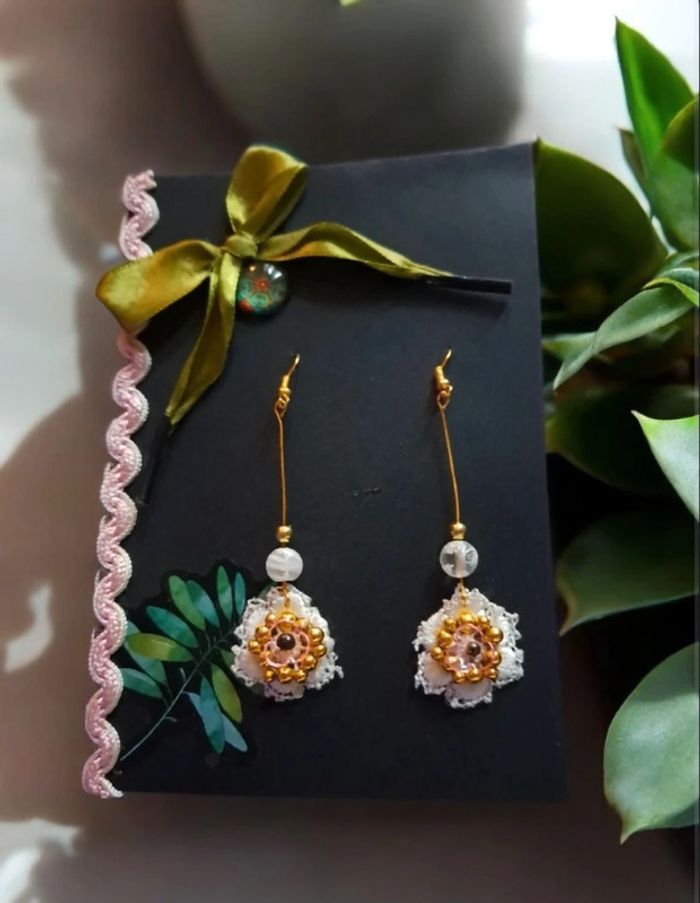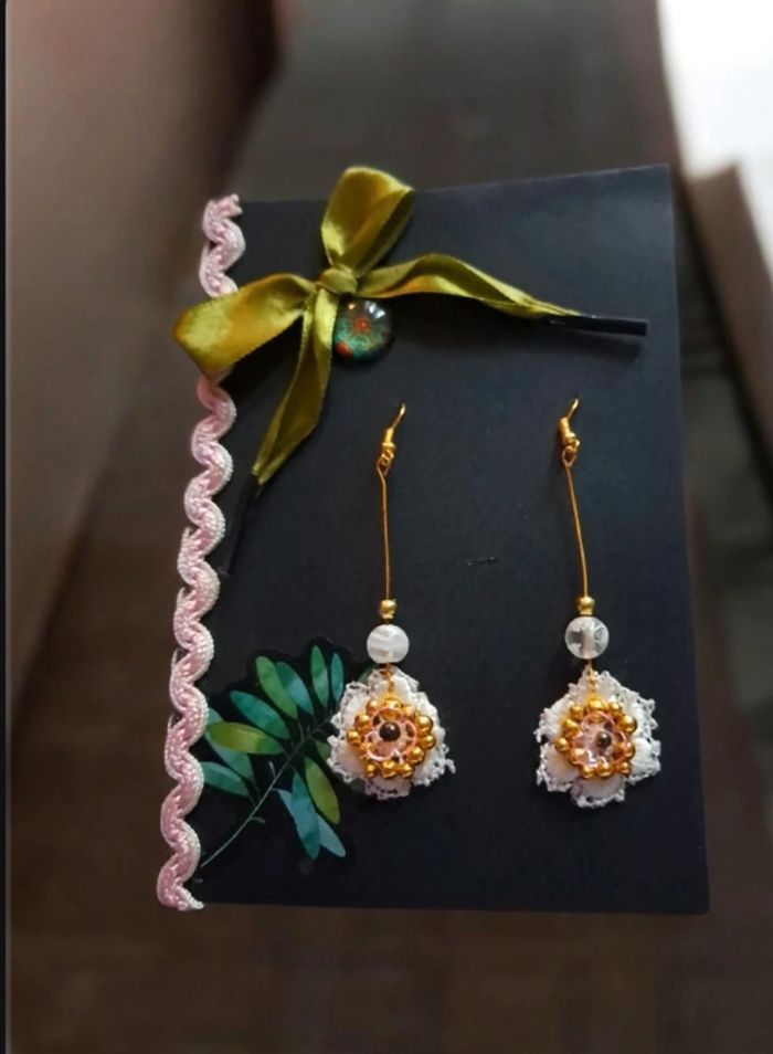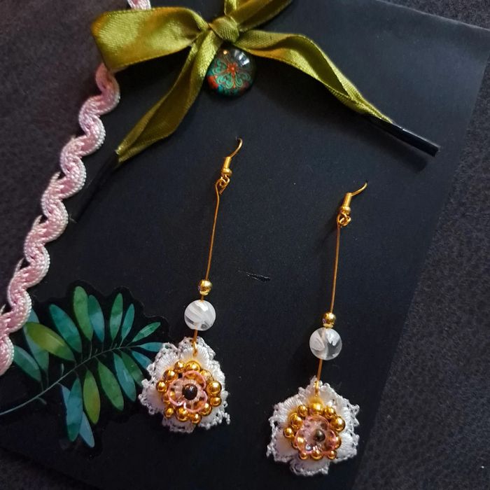 Boucles d'oreilles pendante broderie fleur - photo numéro 8