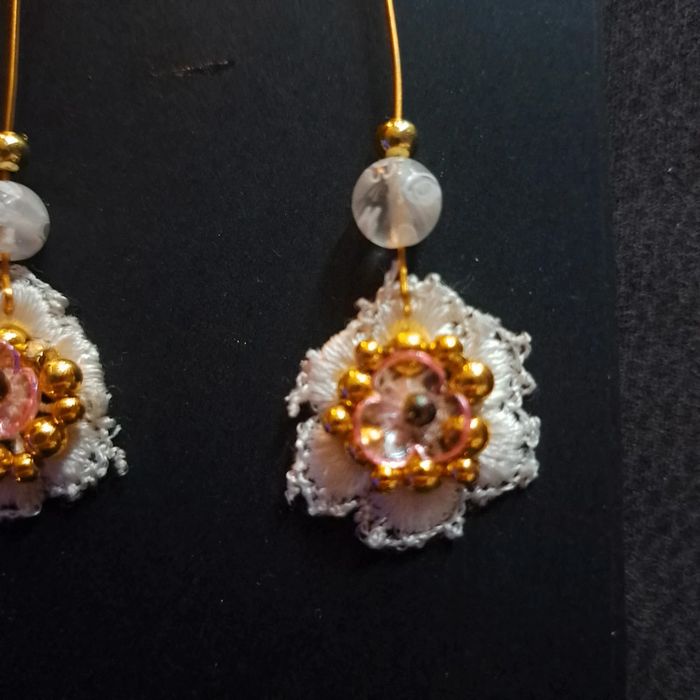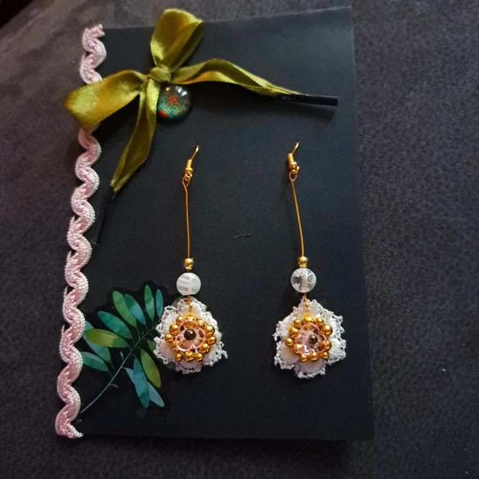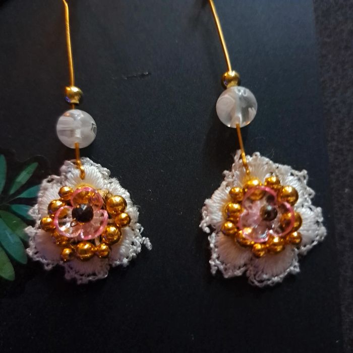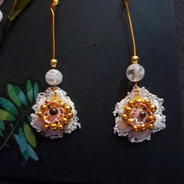 Boucles d'oreilles pendante broderie fleur - photo numéro 14