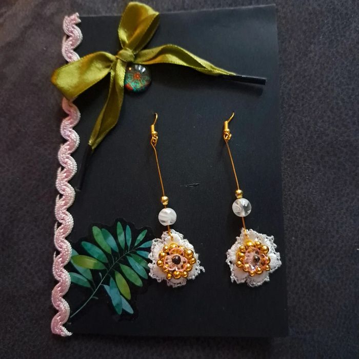 Boucles d'oreilles pendante broderie fleur - photo numéro 7