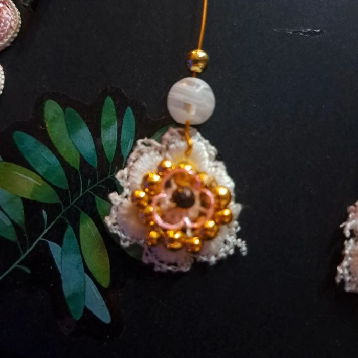 Boucles d'oreilles pendante broderie fleur - photo numéro 10