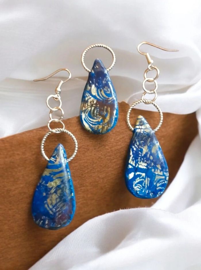 Parrurre boucles d'oreilles pendante avec pendentif assortie bleu - photo numéro 10