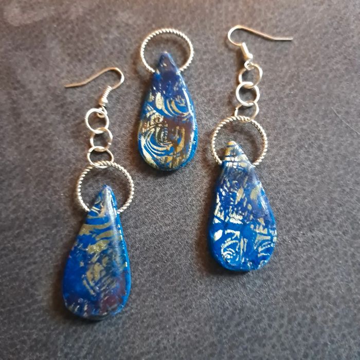 Parrurre boucles d'oreilles pendante avec pendentif assortie bleu - photo numéro 1