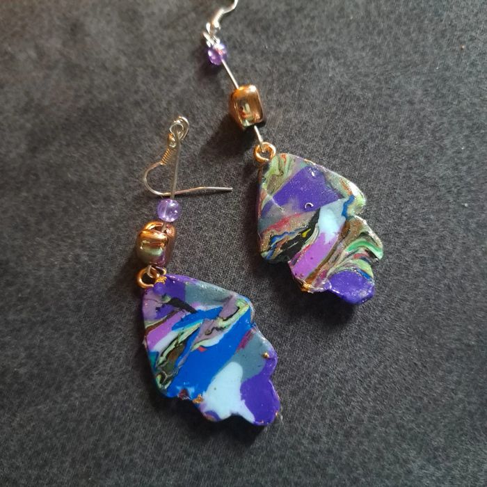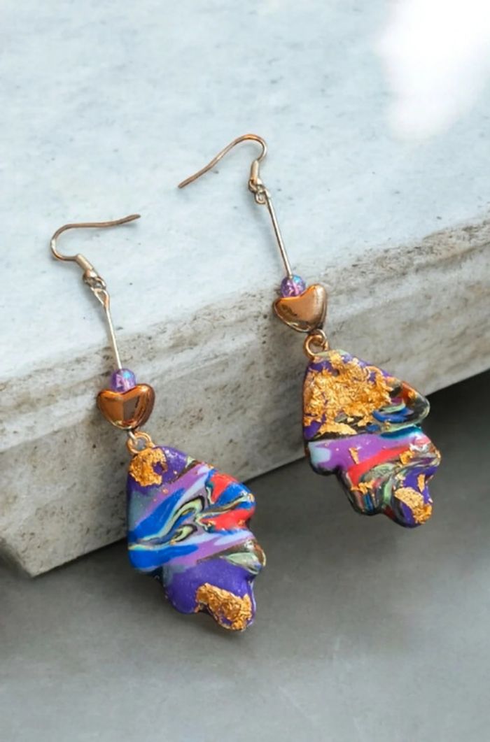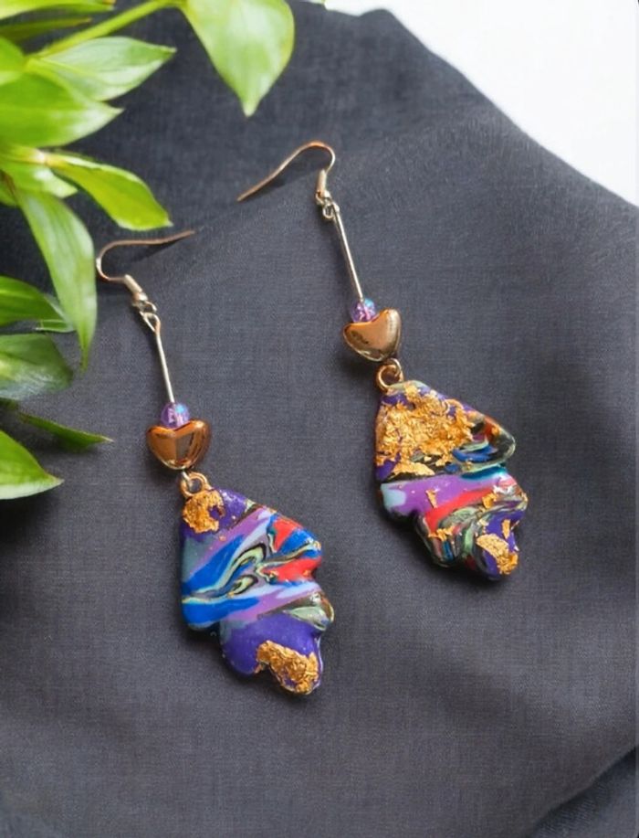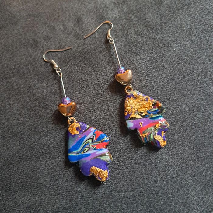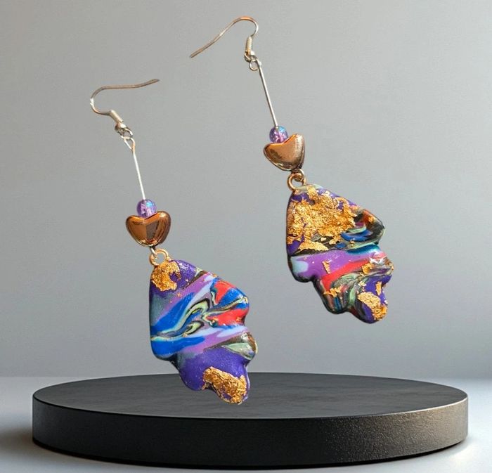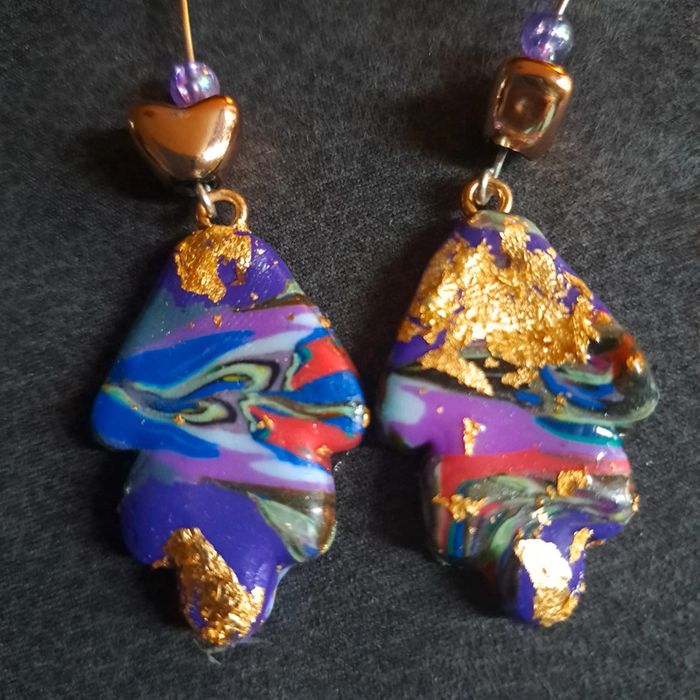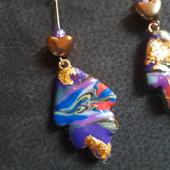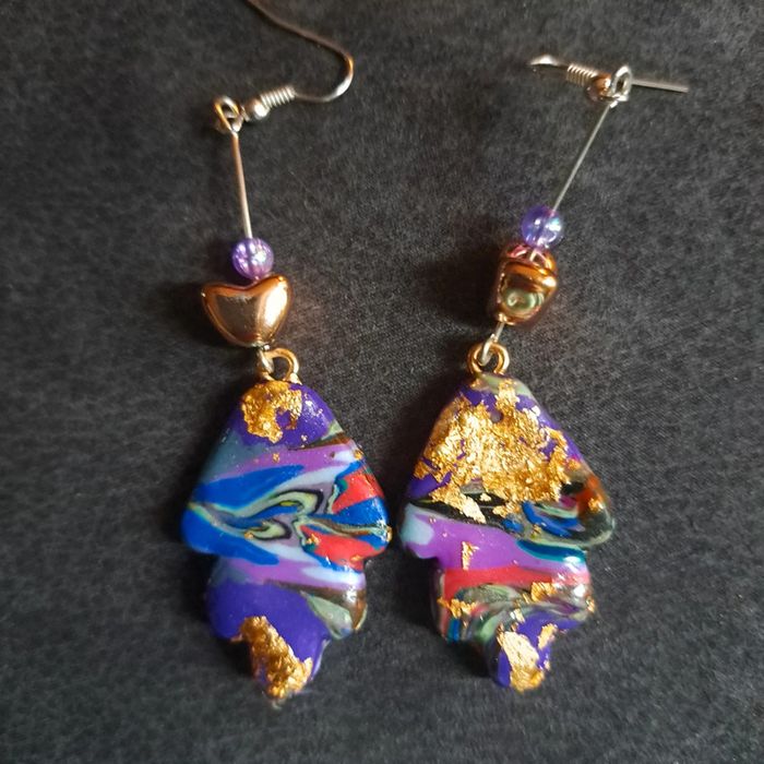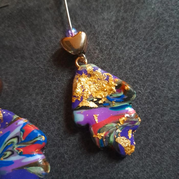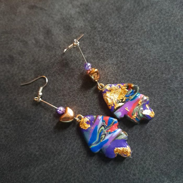 Boucles d'oreilles pendante avec pâte polymere multicolore avec feuilles d'or original et unique #boucles d'oreilles pendantes # boucles d'oreilles bleu et noir #boucles d'oreilles polymere #boucles d'oreilles fantaisies #boucledoreille # boucles d'oreilles Bohème #boutiqueindependante #bouclesdoreillespendantes #boucles d'oreilles résine #boucles d'oreilles multicolore