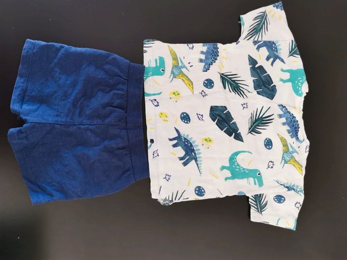 Ensemble composé d'un tee shirt blanc avec motifs dinausore et texte T-Rex rules et short bleu marine Marque zara Taille 12-18 mois 86 cm Très bon état #leeloo3582_18mois #etegarcon18mois #dino #zarakids