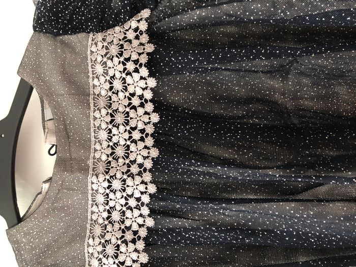 Très jolie robe fille manches courtes. Donne un côté chic avec sa dentelle, sa tulle et ses points argentés. Taille 18 mois