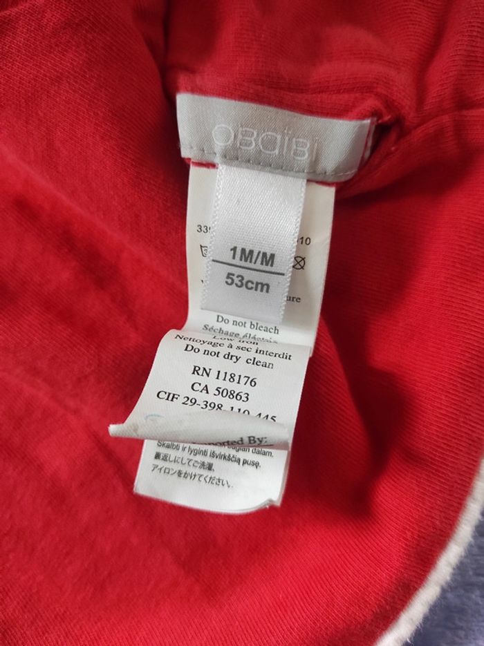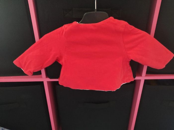 Gilet réversible avec un coté blanc et un coté rouge en parfait état. Marque: Obaïbi Taille: 1 mois C.C