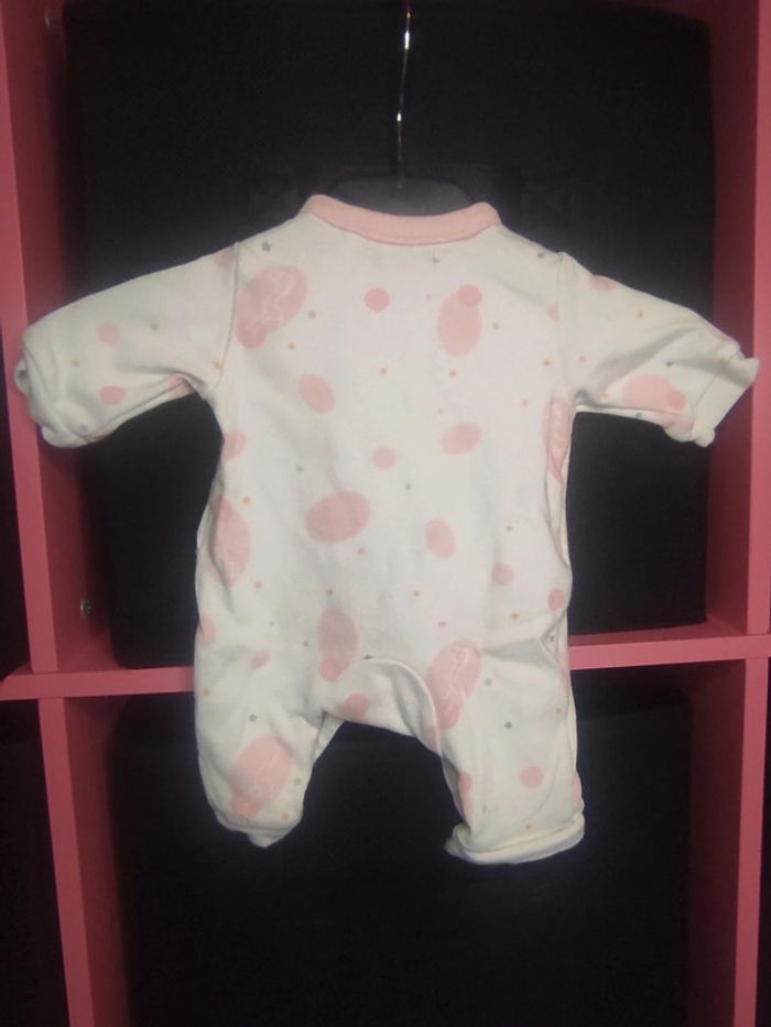 Pyjama fin sans pied blanc et rose en très bon état. Fermeture sur le devant. Marque: Orchestra Taille: prématuré (45cm) C.Cpyjama fin