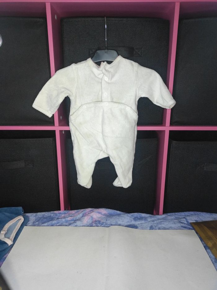 Pyjama épais blanc "little princess" en très bon état. Fermeture dans le dos . Marque: Kiabi Taille: 1 mois C.C