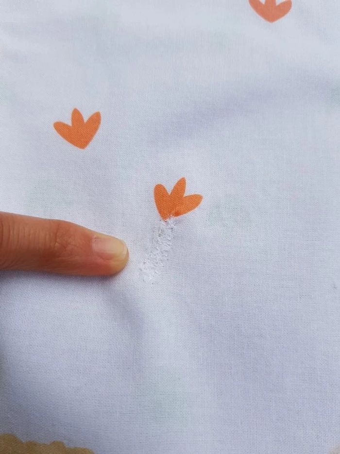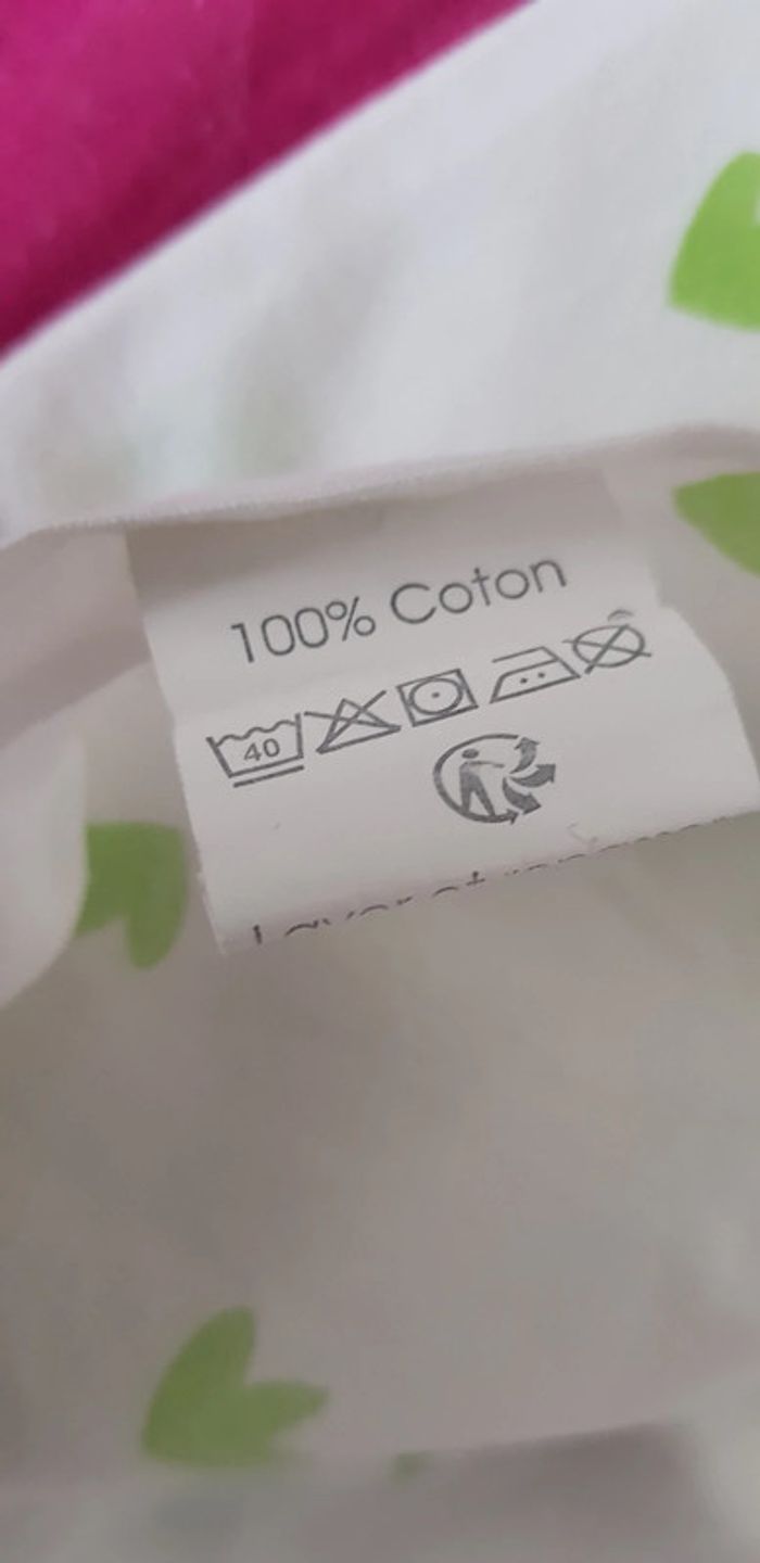 Ensemble housse de couette + drap housse + taie carré env. 60 cm - T. 140x120 - Petite reprise au niveau de l'ouverture de la housse de couette mais sinon reste en TRÈS BON ÉTAT.