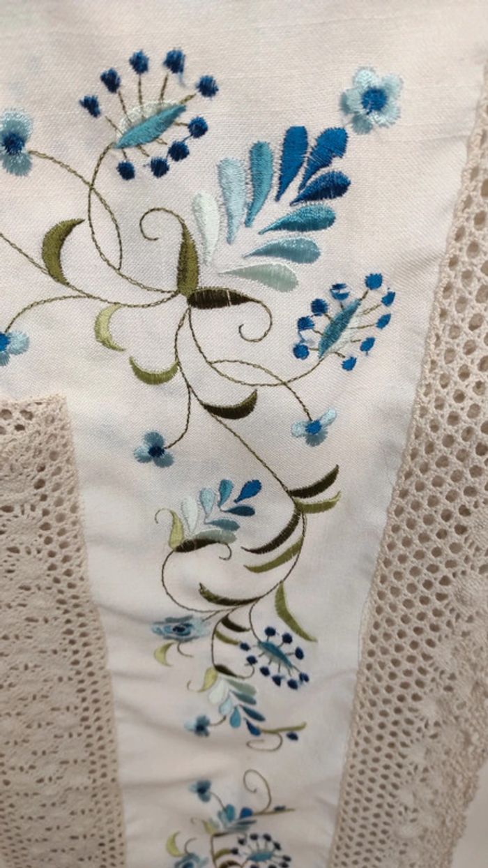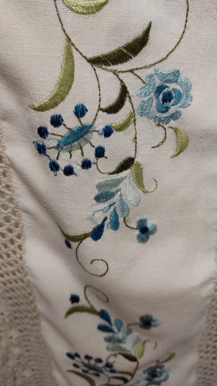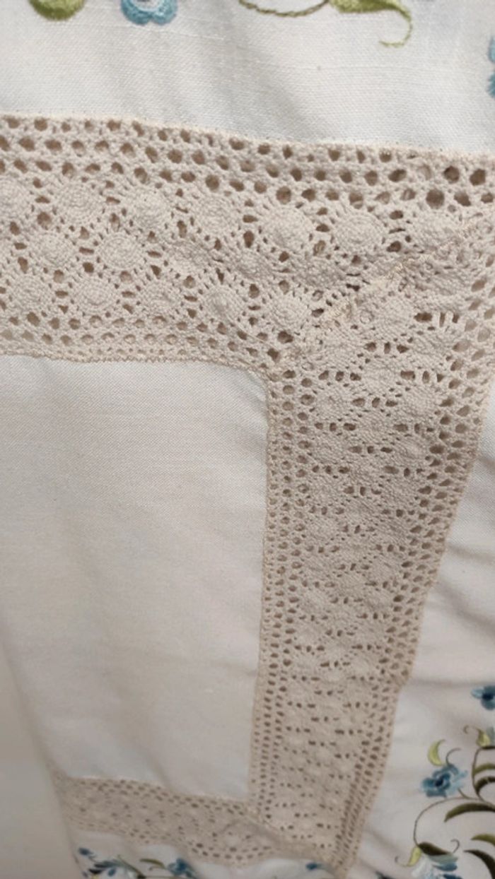 Beau napperon, dimensions : 80 x 80 cm Un pétale décousu (voir photo) sinon bon état.