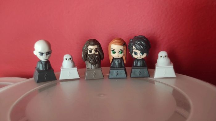 Collection Super U Hyper U Hedwige X2 Harry Potter Rubeus Hagrid Ginny Weasley Lord Voldemort 5€ les 6, possible achat 1€ l'unité, me contacter pour me demander