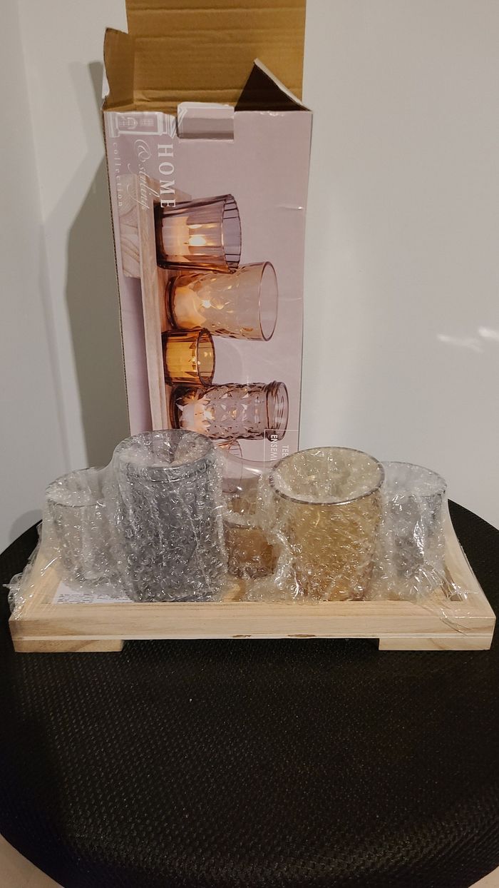 Ensemble de photophore sur un plateau de bois. - photo numéro 1