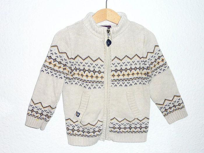 Pour voir mes annonces dans cette taille, tapez #karinelillegarcon2ans Gilet Sergent Major en coton tricoté, en très bon état, couleur beige, fermeture zippée, col montant moutonné