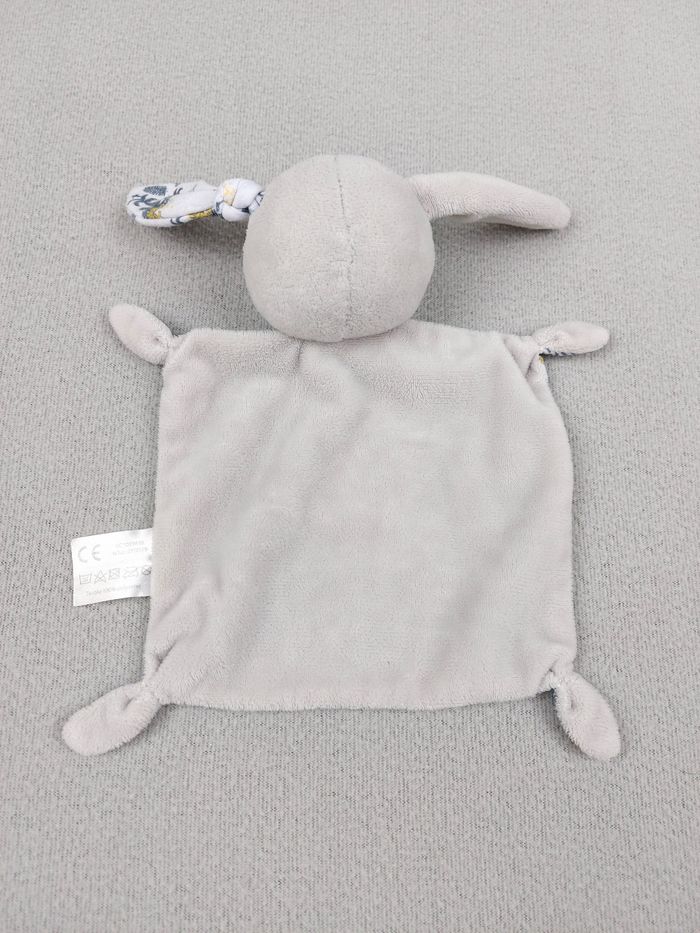 Doudou plat lapin chien gris IKKS BERDOUES masque gris blanc jaune savane tigre
