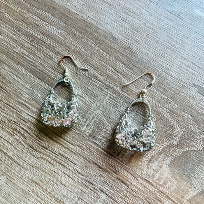 Boucles d’oreilles sac à main • Couleur argenté • En superbe etat #bouclesdoreilles #bouclesdoreillesargentees #bouclesdoreillessacamain #camillel2_sac