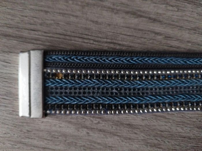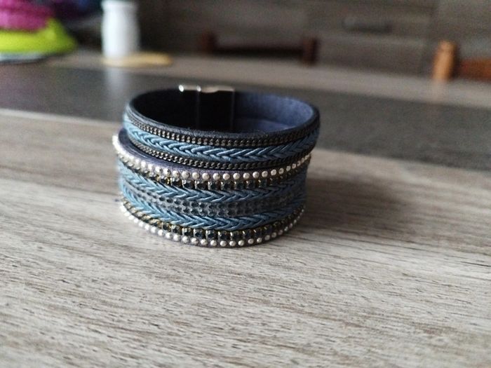 Bracelet femme fantasie. S'attache par aimant. Très bon état manque juste une petite paillette sur un côté ( voir photo)