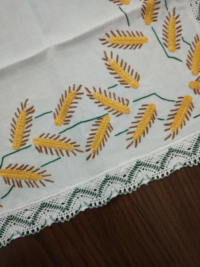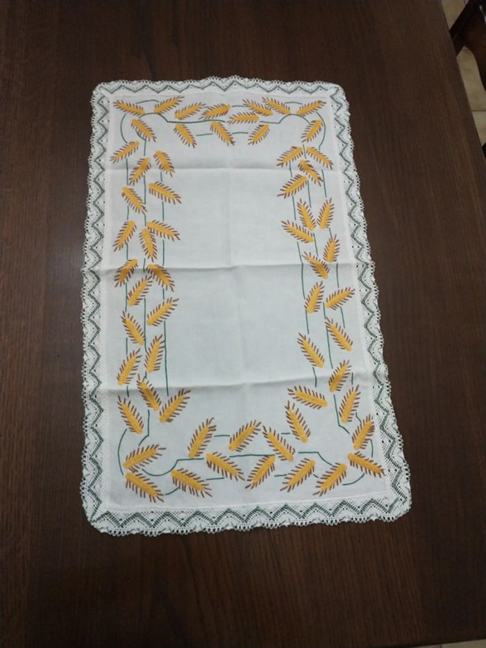 Petit napperon dimension 45 x 75 broderie artisanale Motif épi de blé