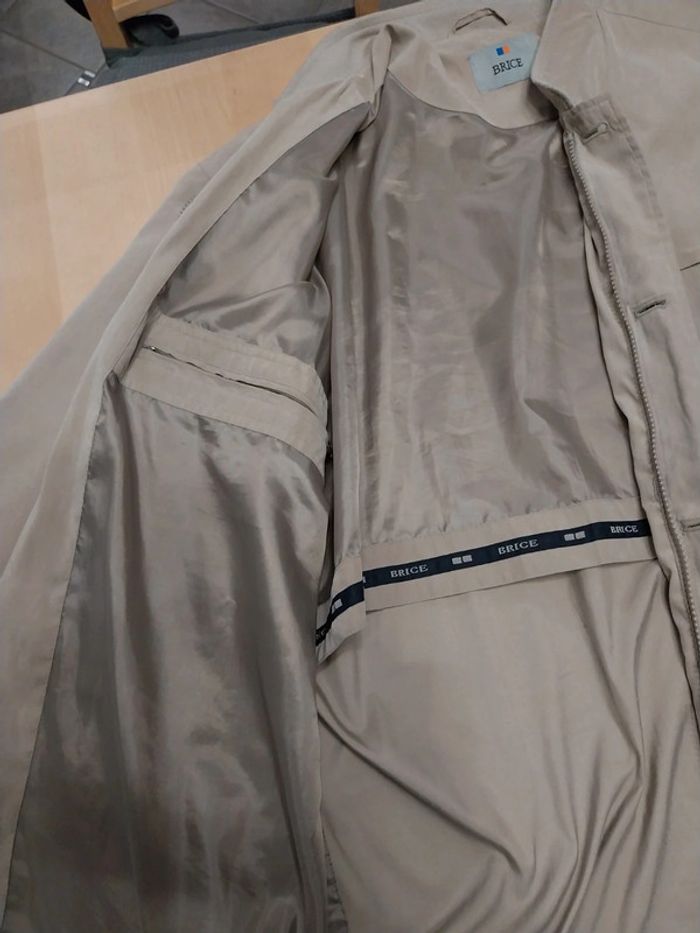 Veste beige Brice taille 56 Excellent état Possède des proches intérieur et extérieur Manteau doublé et très chaud kaki taille XL. Taille d'aisselle à aisselles 63.5cm