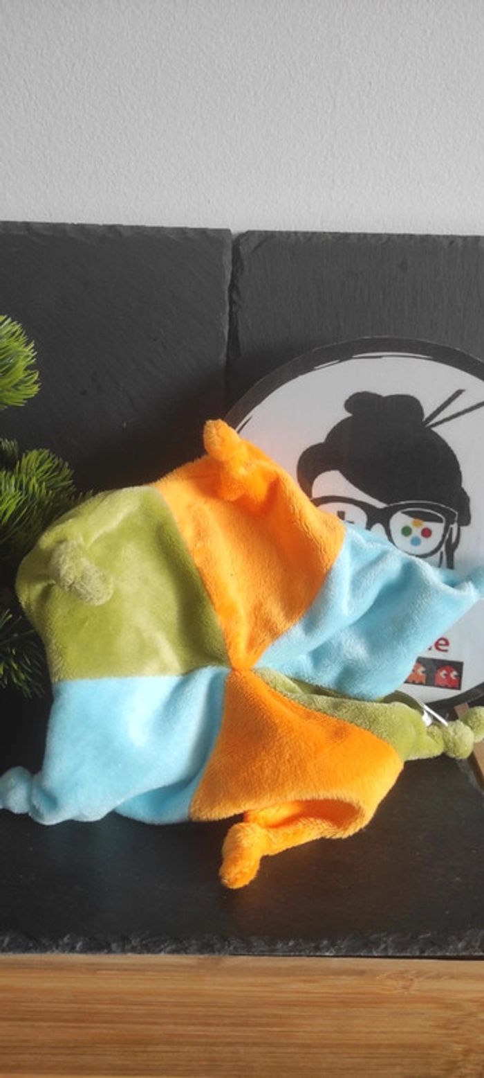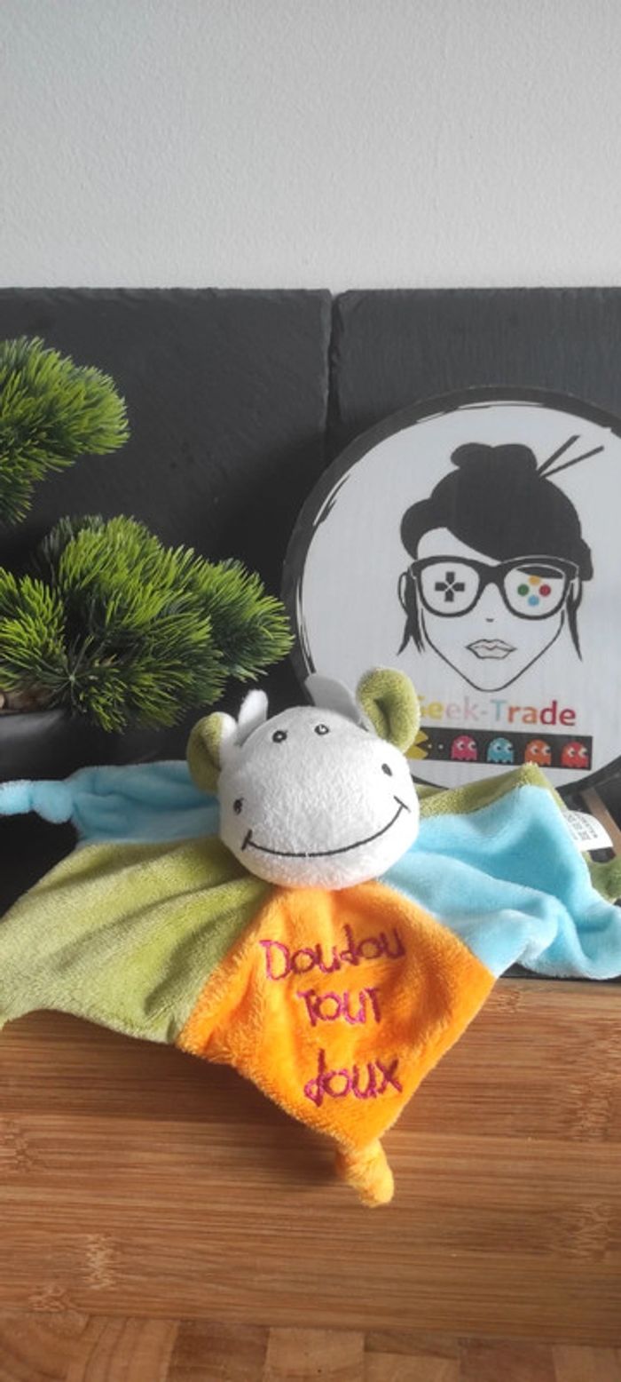 Doudou Tout doux Vache vert bleu orange central vet blanc étoile Noeuds Sourire - photo numéro 1