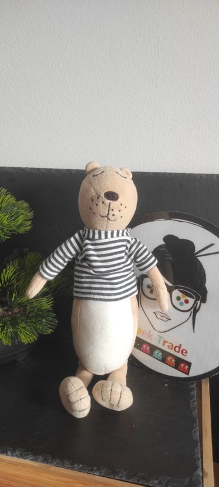 Chien bout'chou Monoprix doudou peluche t-shirt rayé beige blanc bleu Marron