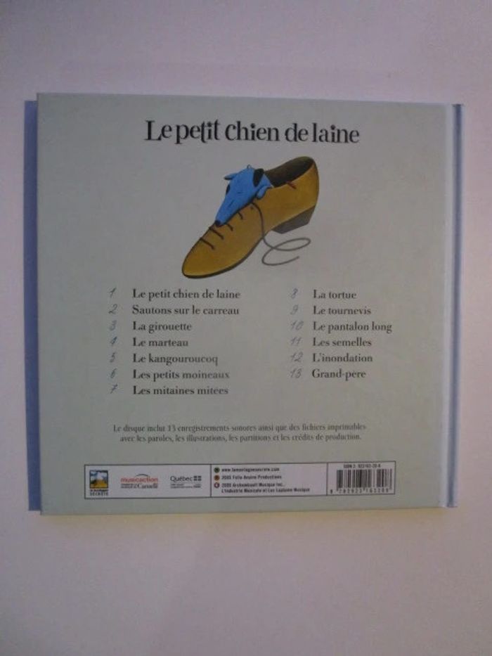 La première chanson, "Le petit chien de laine", raconte l'histoire tragique d'une petite bête à queue de coton enfermée par ses parents dans le placard de la salle de bain et dévorée par les mites. Heureusement que sa maman est là pour lui redonner vie ! Le texte de douze autres chansons, habilement rimées, faciles à interpréter, sont à découvrir. Gaie et rythmée, la musique invite à chanter, danser et s'amuser. Commentaire : Un véritable trésor patrimonial que ces chansons de Lionel Daunais! Les grands-parents se souviendront d’une chanson de leur enfance, Le petit chien de laine, alors que les enfants découvriront l’univers jamais démodé de ce grand auteur-compositeur qui avait l’art de raconter en peu de mots une histoire bourrée d’humour et d’images inoubliables. Les illustrations de Marie Lafrance redonnent un fabuleux air de jeunesse aux paroles. Cet album est né de la découverte de textes originaux et inédits de l’œuvre de Lionel Daunais, conservés à la Bibliothèque nationale du Québec. On y retrouve les voix de Michel Rivard, de Mes Aïeux, de Martin Léon, de Pascale Bussières et de plusieurs autres. Éditeur ‏ : ‎ MONTAGNE SECRET 40 pages Âge de lecture ‏ : ‎ 3 - 7 ans Dimensions ‏ : ‎ 20.96 x 0.76 x 20.32 cm Prix éditeur : 19,5€ Livre et cd comme neufs Je vends d'autres livres cd #phil_peg_livrecd #chansons #québec