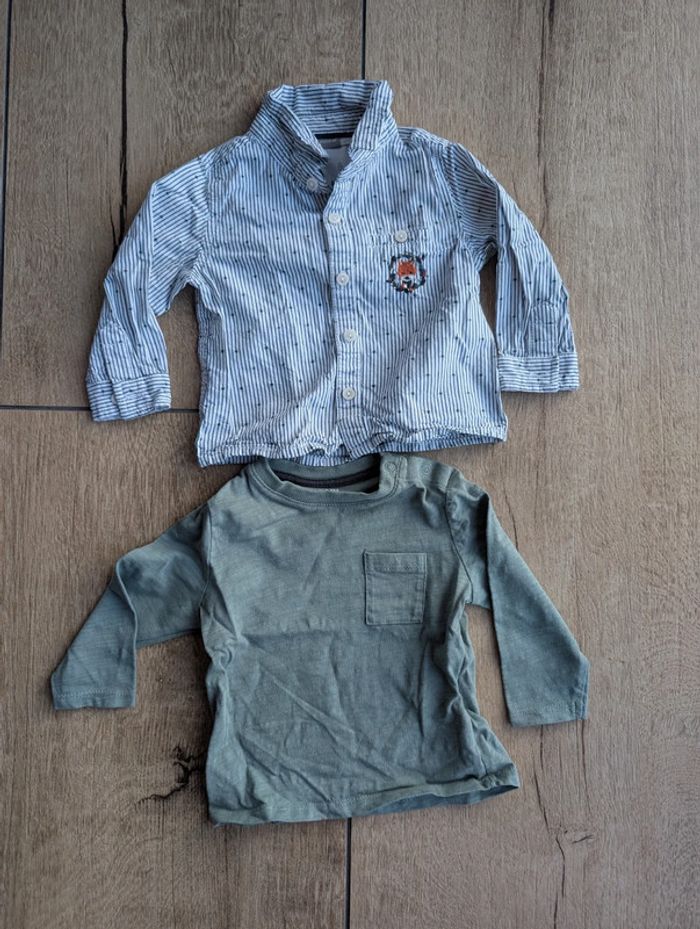 Lot 1 chemise + 1 pull fin garçon 9 mois - photo numéro 1