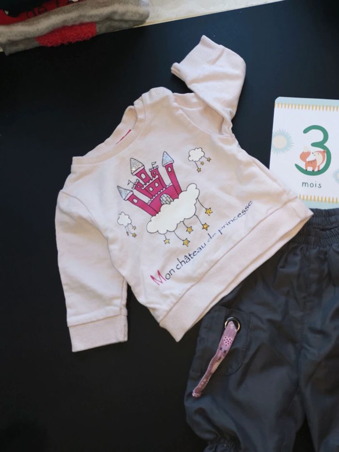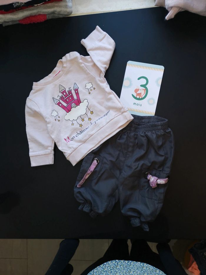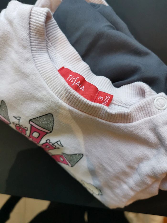 Ensemble chaud tissaia taille 3 mois. Bon état. Le pantalon a une couleur entre le gris et le maron.