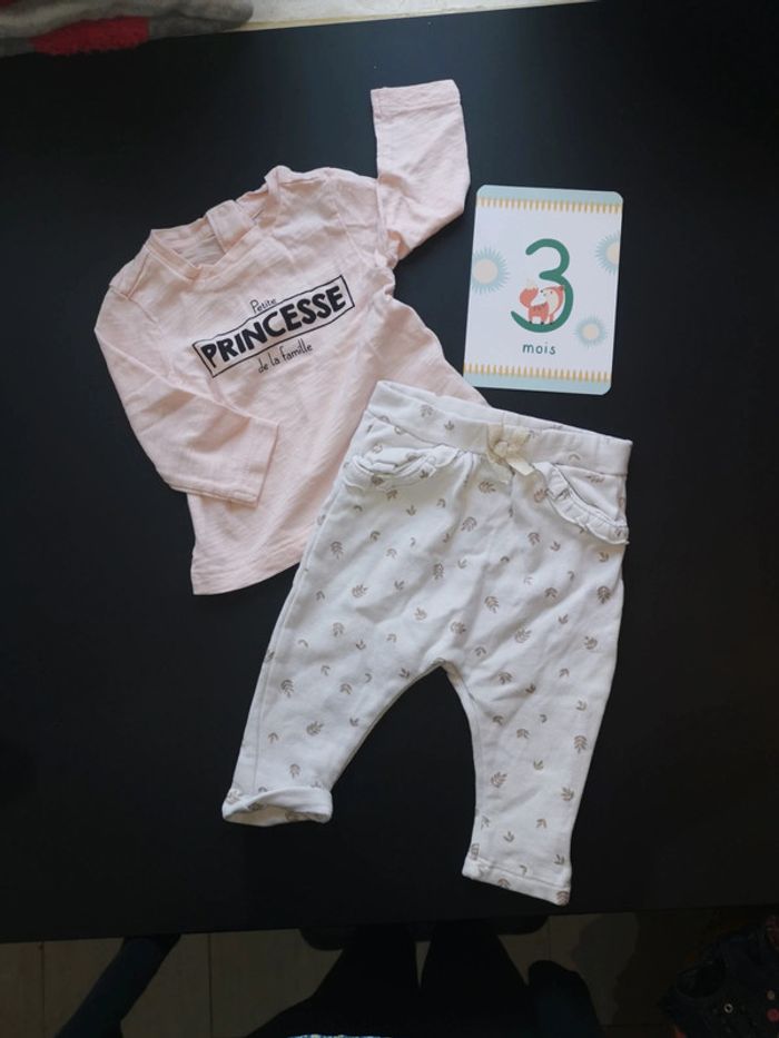 Ensemble haut manche longue fin orchestra et pantalon tape à l'œil. Taille 3 mois bon état général