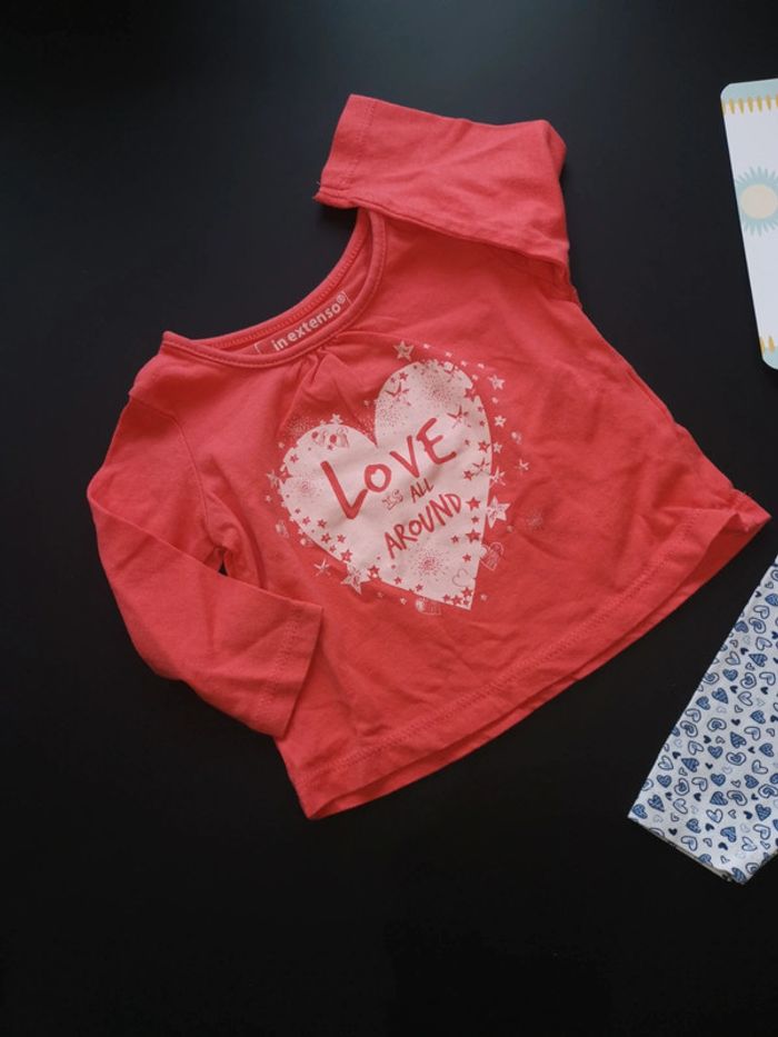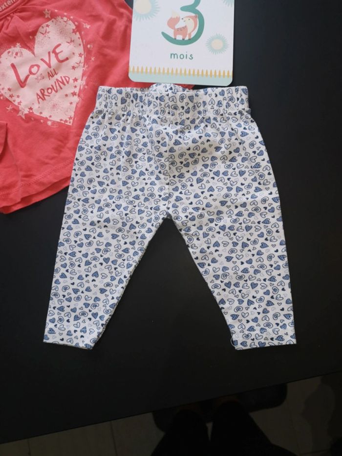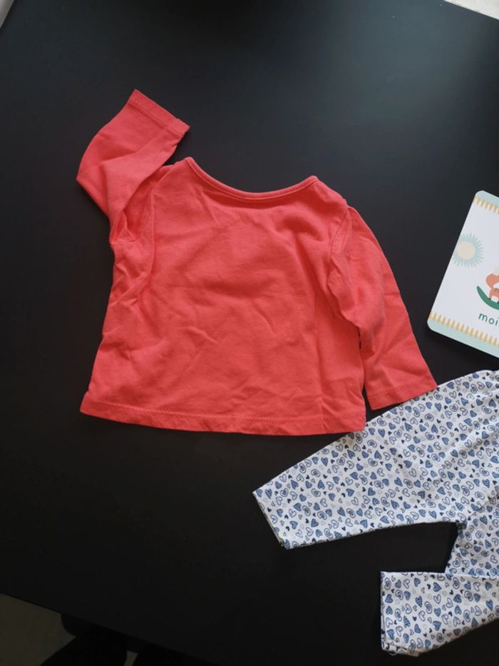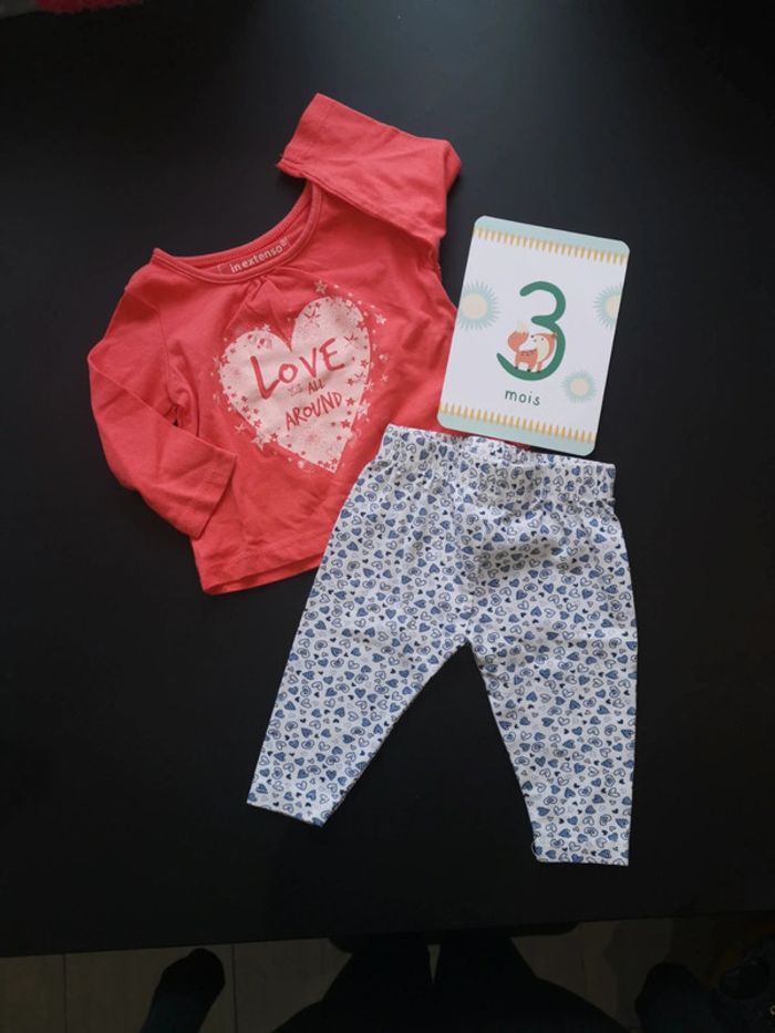 Ensemble haut manche longue fin inextenso couleur corail et legging zeeman taille 3 mois. Bon état général.