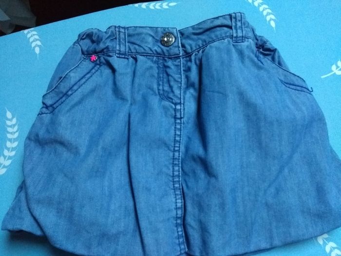 Jupe boule couleur jeans. Très très bon état. Taille réglable par élastiques.