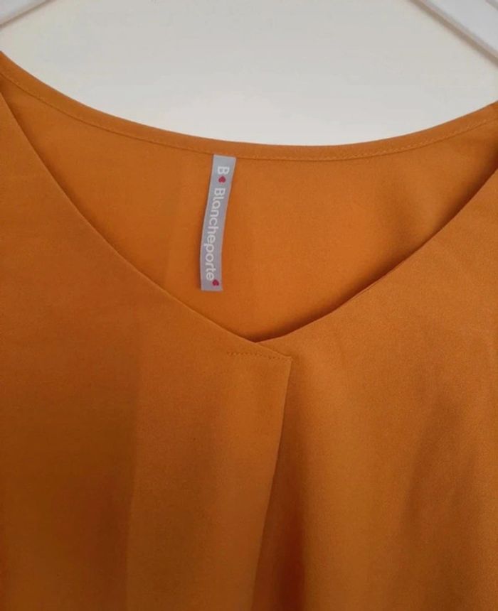 Blouse moutarde foncé taille 44, Blancheporte. Fluide, matière qui sèche vite. Petit bouton à la manche pour replier un peu. Jamais portée. Je la vends au prix de 12 euros. #TailleXXL44marine