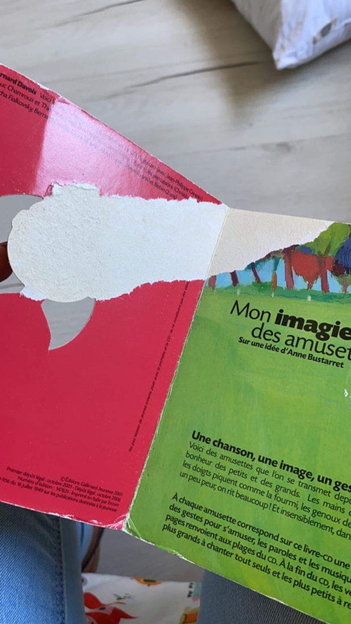livre «  mon imagier des amusettes » d’Olivier Tallec - Gallimard jeunesse idéal éveil musical intérieur du livre ( au verso de la 1 ère de couverture abîmé ) . sinon reste nickel vendu sans le CD , mais cela n’empêche en rien . nous pouvons chanter , ce sont des chansons connues - 16 chansons à gestes pour les tout petits - #livresalexiaguillou2206