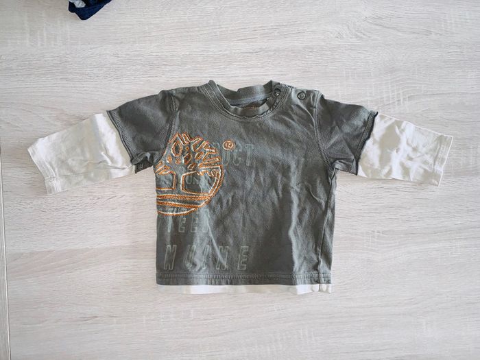 tee shirt à manches longues , kaki et beige . Timberland . 9 mois