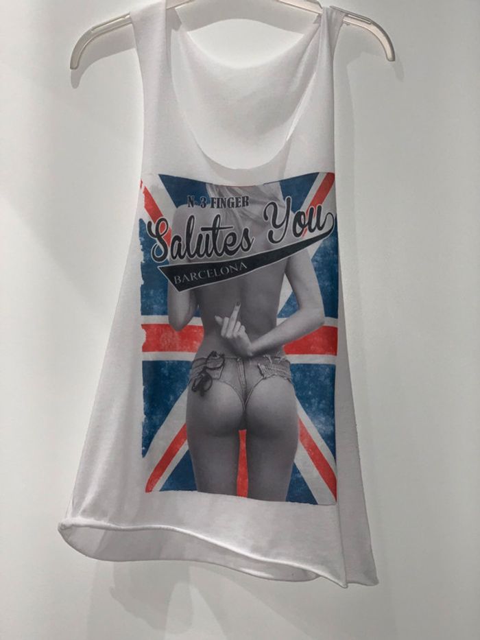 débardeur taille unique mais va pour un 40 meme un 38 -drapeau anglais et femme-