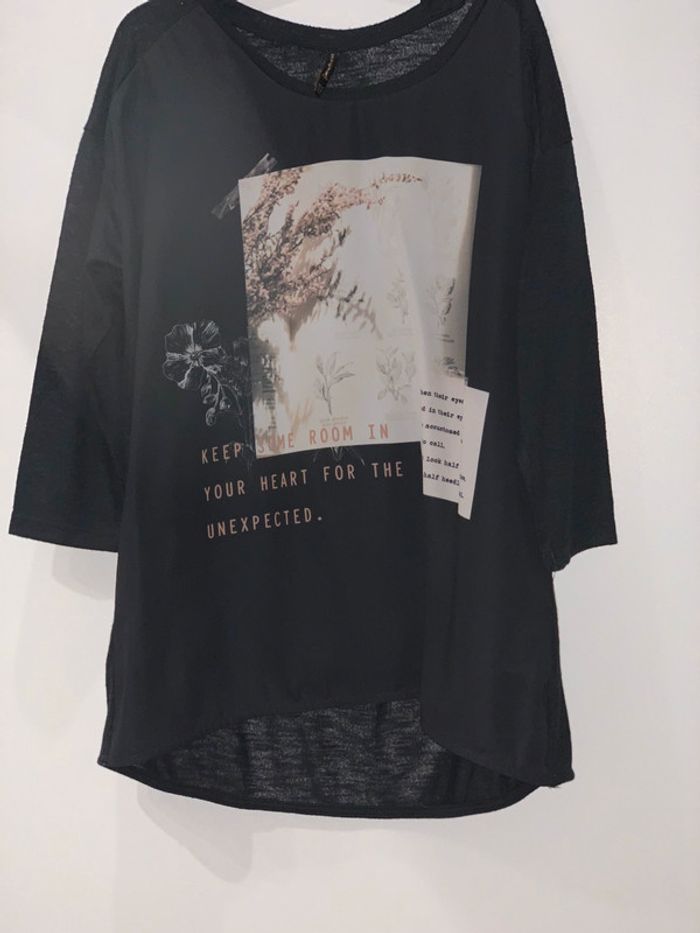 haut noir manches 3/4 - tee shirt manches 3/4 avec un imprimé floral très agréable à porter taille 38