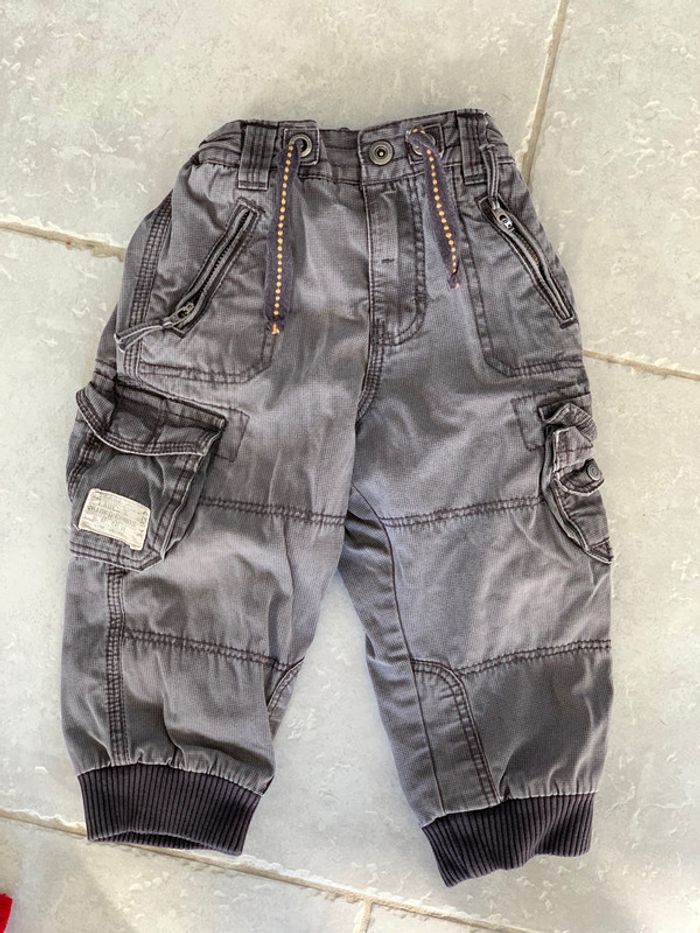 pantalon très sympa avec de nombreuses poches réglable à la taille , resserré à la cheville taille 12/18 mois