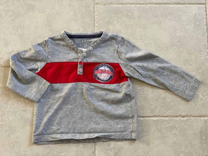 haut à manches longues/T-shirt taille 12/24 mois gris et rouge , rang de boutons au col