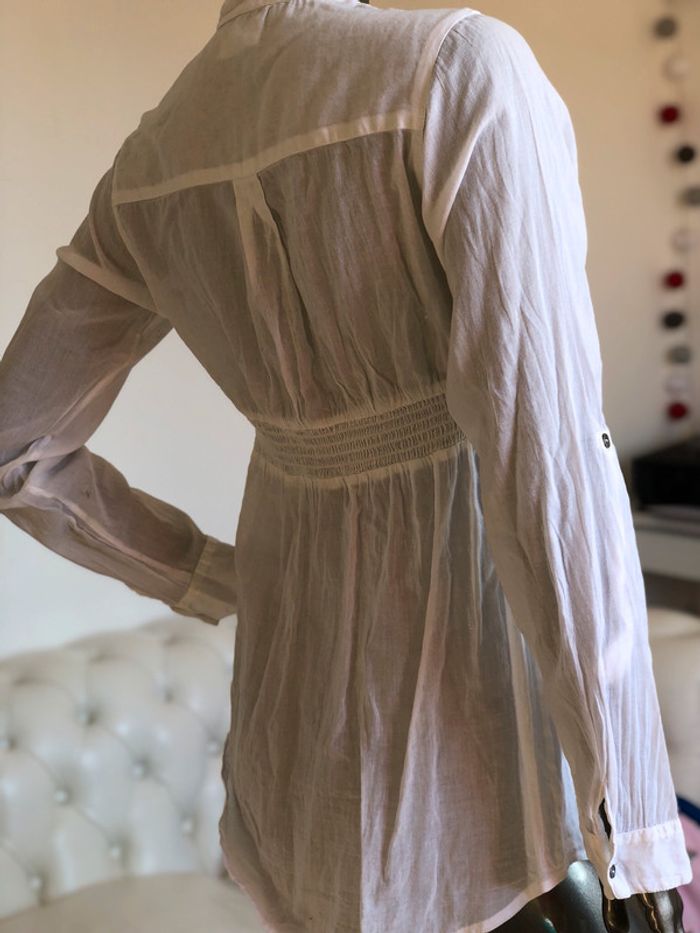 Bonjour je vends un haut à manches longues blanc style blouse resserrer sous la poitrine très joli, fluide en bas. Possibilité d’en faire des manche trois quarts. Marque Jennyfer Taille : 40 #40femmealexiaguillou2206