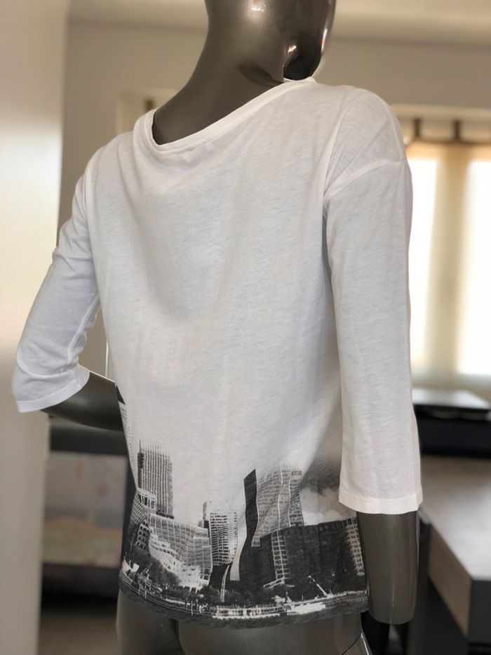 Bonjour je vends un os manches trois quarts de chez Bershka. Il est blanc avec des imprimés devant et derrière . Très bon état mis deux quelques fois
