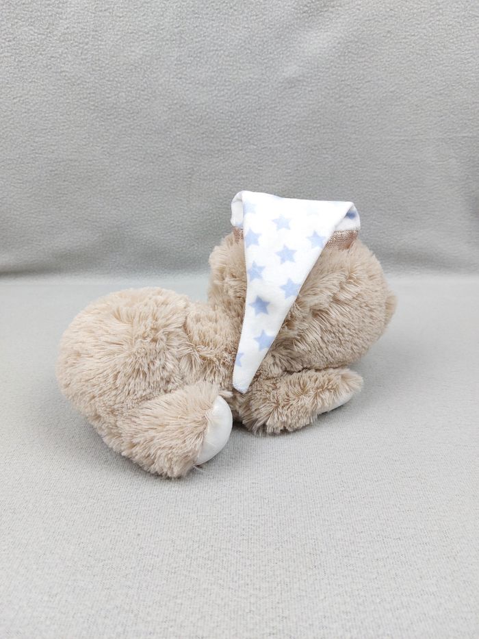 Peluche doudou ours dormeur beige blanc bonnet étoiles bleues 20 cm Interbaby