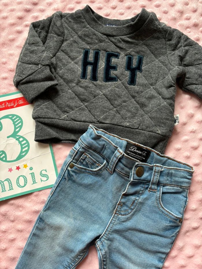 Ensemble👶🏽 Taille🪡: 3 mois 56-62cm / 0-3 mois Marque🛍️: kiabi / denim&co État👍🏽: très bon état Prix💶:5€ ou 3€/pièce #3moissouh