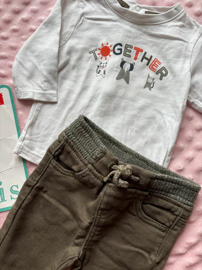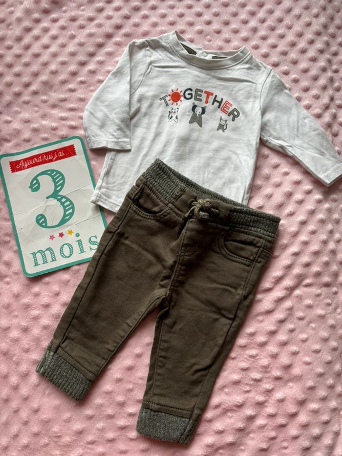 Ensemble👶🏽 Taille🪡: 3 mois 59cm / 0-3m 62cm Marque🛍️: obaibi / primark État👍🏽: très bon état Prix💶:5€ ou 3€/pièce #3moissouh