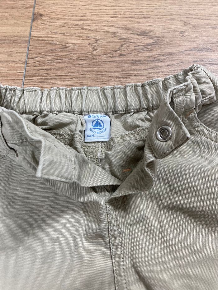 Pantalon beige - taille élastique et pression Marque : Petit Bateau Taille : 18 mois Matière : 100% coton Etat : très bon état N’hésitez pas à regarder l’ensemble du dressing, je fais des prix pour les lots 🍀