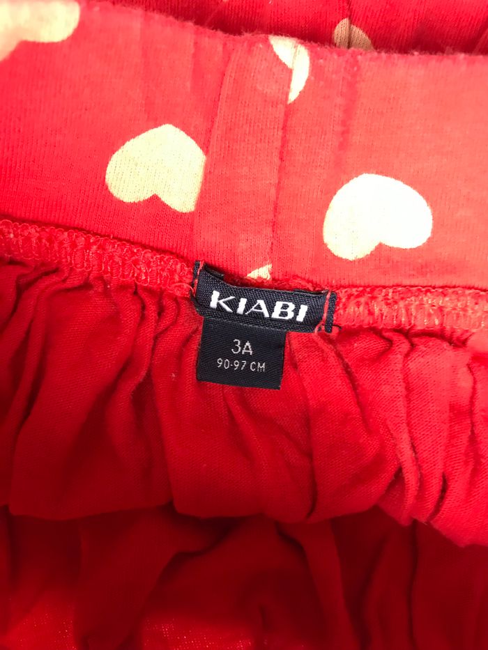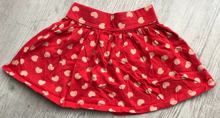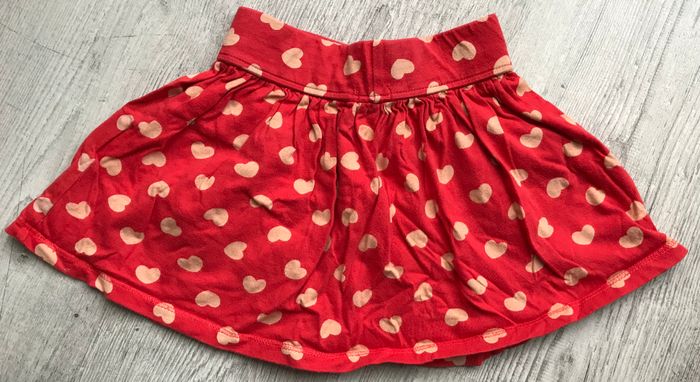 jupe motif coeurs de la marque Kiabi taille 3 ans couleur rouge petites traces d’utilisation occasion, bon état