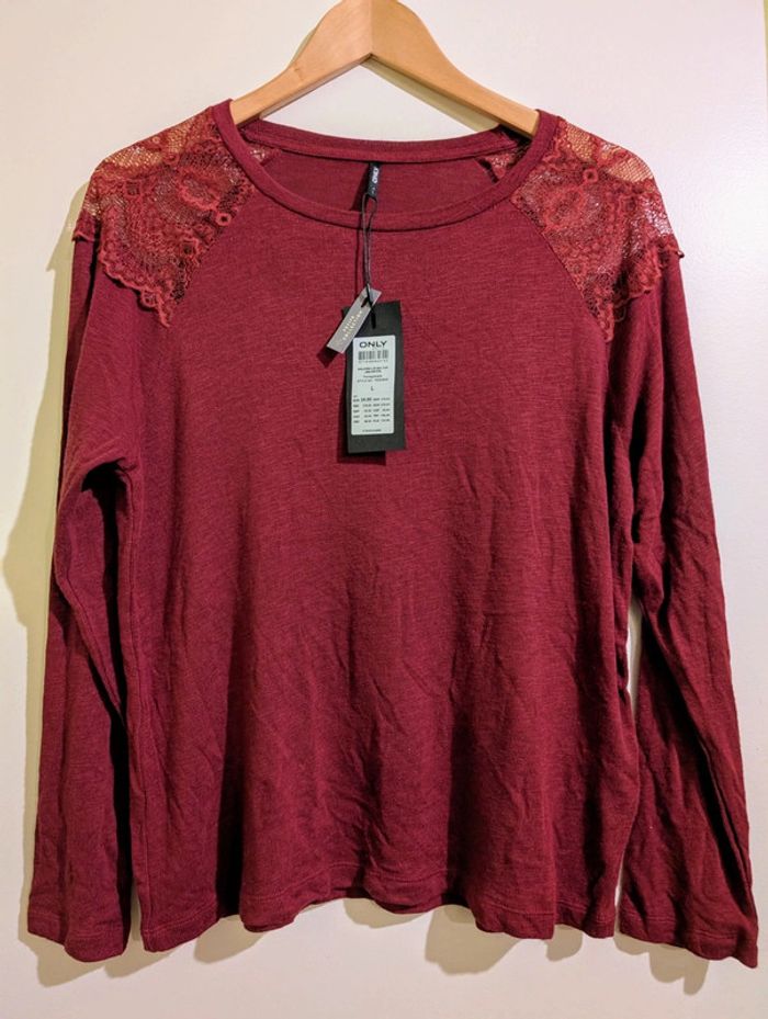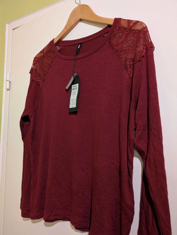 Pull femme dentelle rouge bordeau Only taille L neuf doux. Très joli et féminin. Esprit romantique. Acheté 25 euros J'ai beaucoup maigri, c'est pour cela que je le revend. Je fais plutôt taille S maintenant #yipin_femme_l
