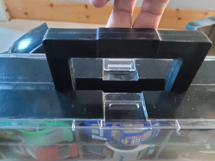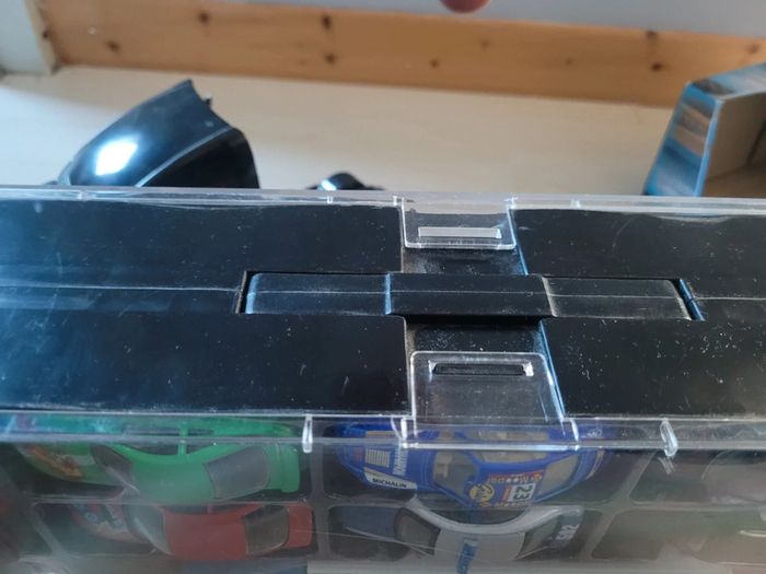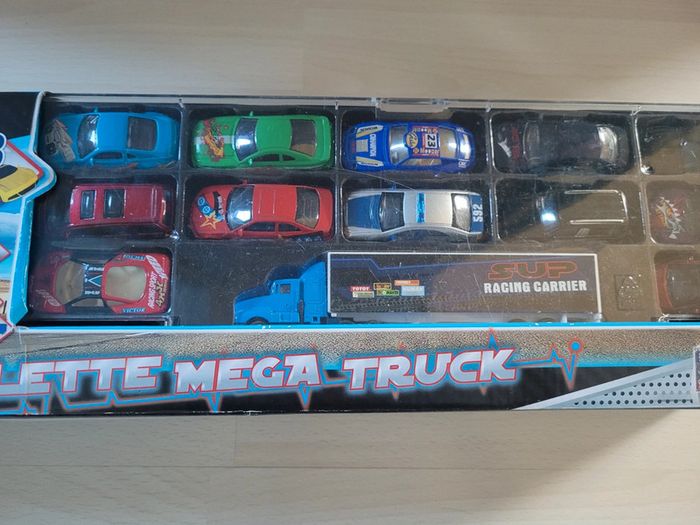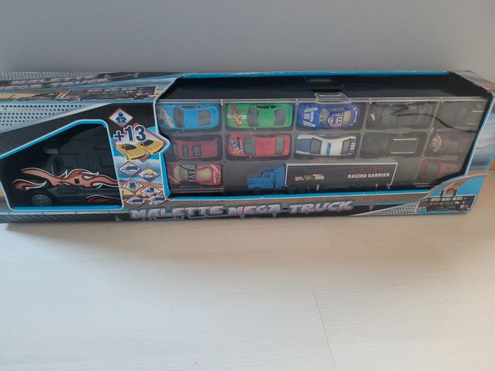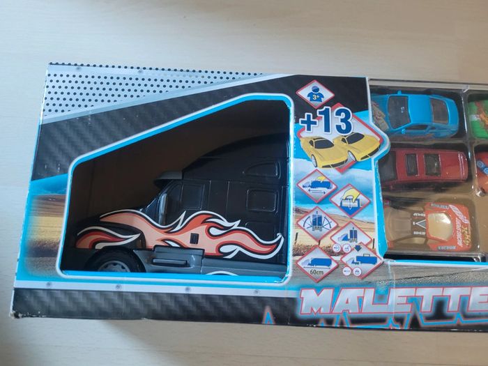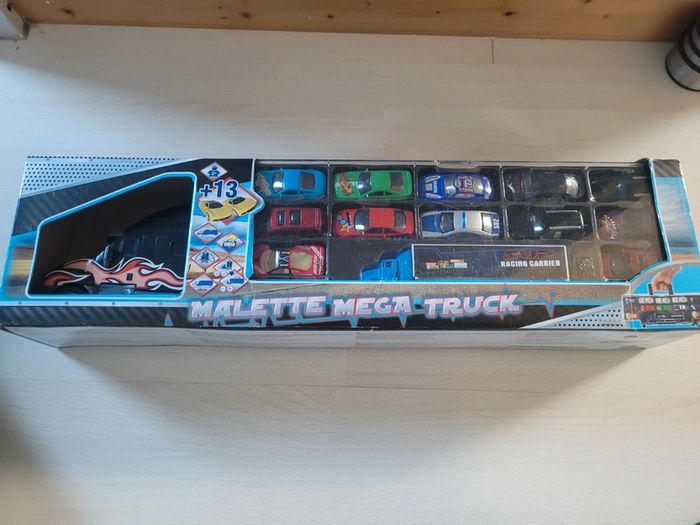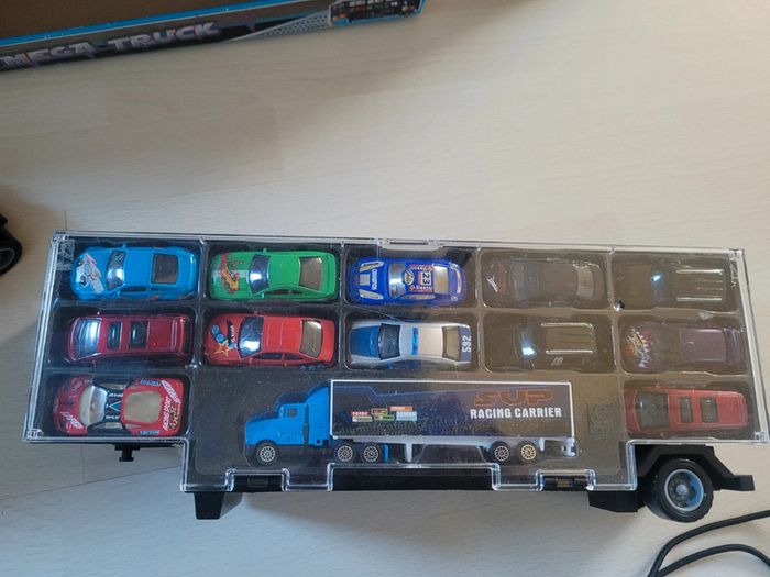 comprend 13 voitures et 1 camion Le tout rangé dans un grand camion malette transportable quelques griffures mais pas gênant