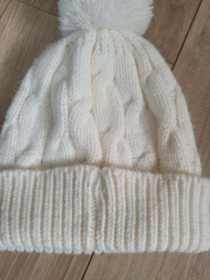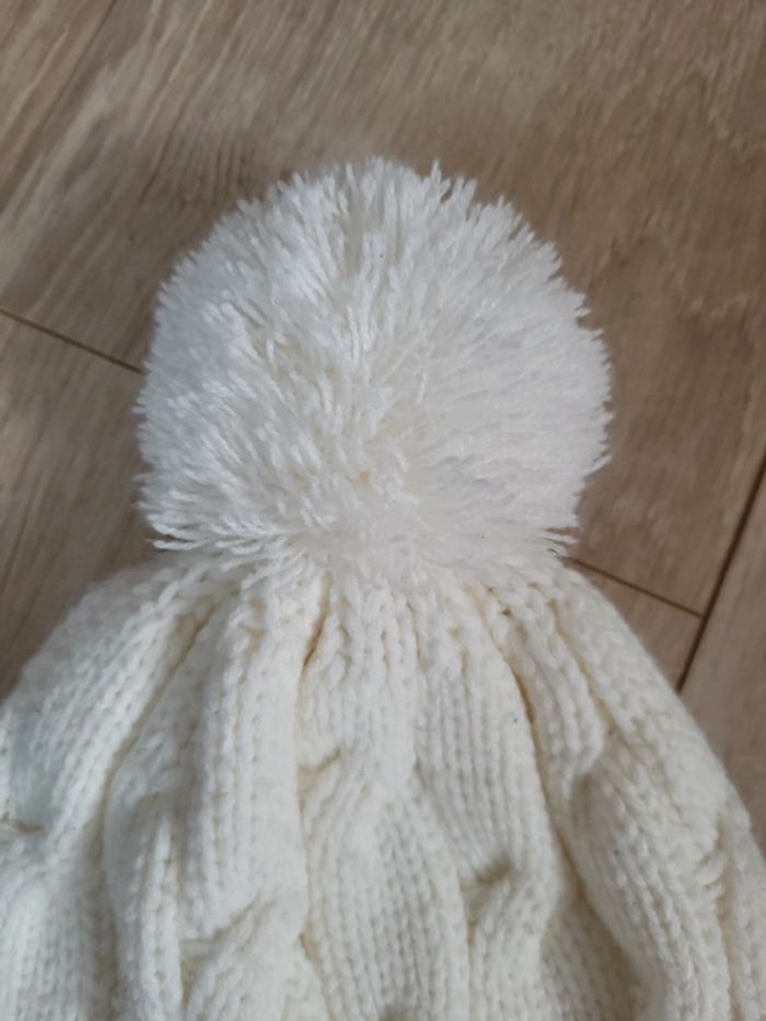Bonnet blanc   écru  avec ponpon - photo numéro 4