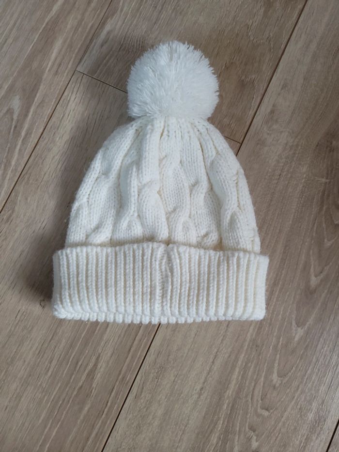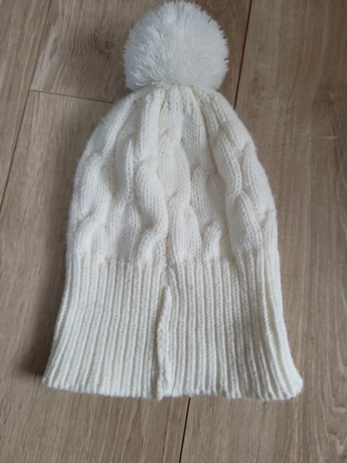 Bonnet blanc   écru  avec ponpon - photo numéro 3