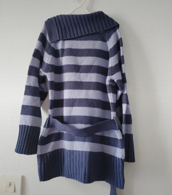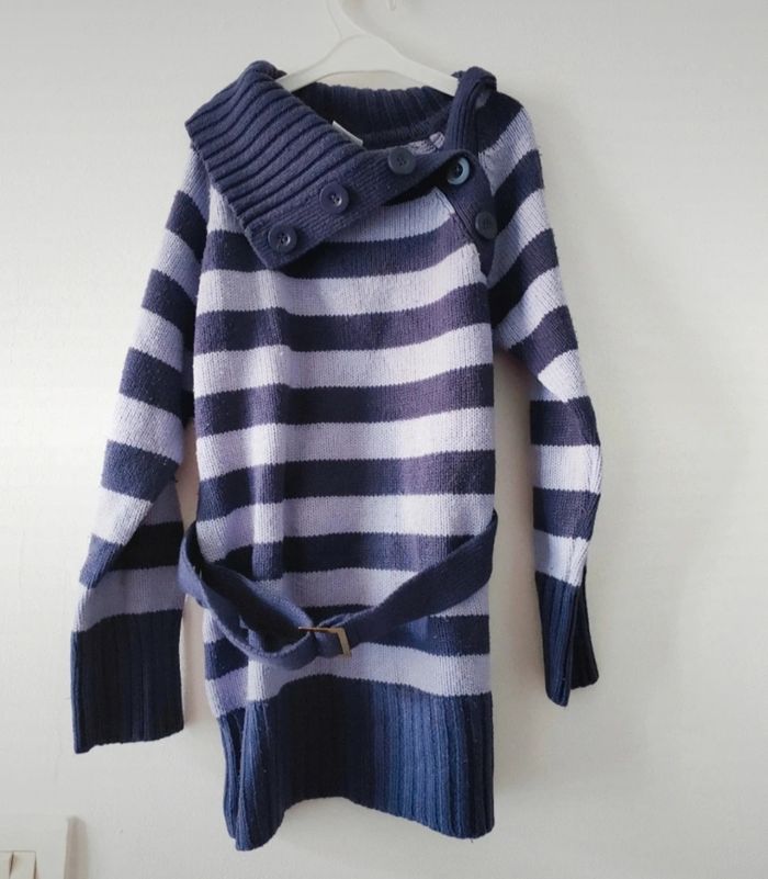 Pull rayé long avec ceinture en bon état (porté plusieurs fois). Taille 6 ans. Marque Palomino. #morganariafille6ans N'hésitez pas à me contacter pour toute question 🙂