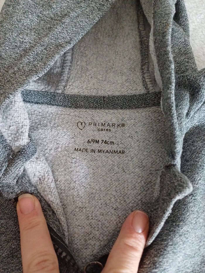 Gilet gris a capuche zippé Taille 6-9 mois, 74cm Mais convient pour du 12 mois. #12mois #12moisgarçon #12moislexou_77 #primark74cm